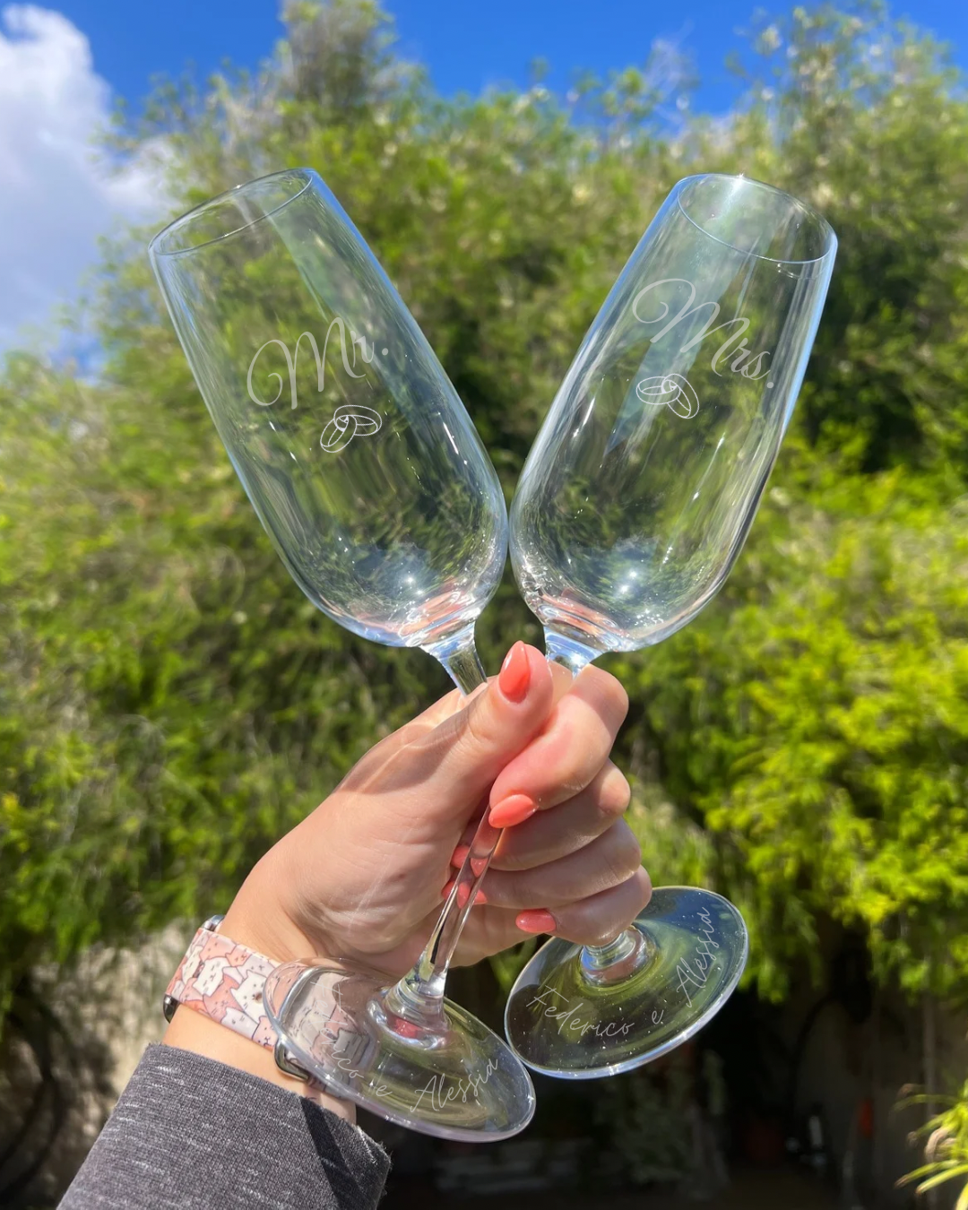 Brindate al vostro amore con stile: calici personalizzati per un matrimonio indimenticabile. Un tocco unico per il vostro sì.