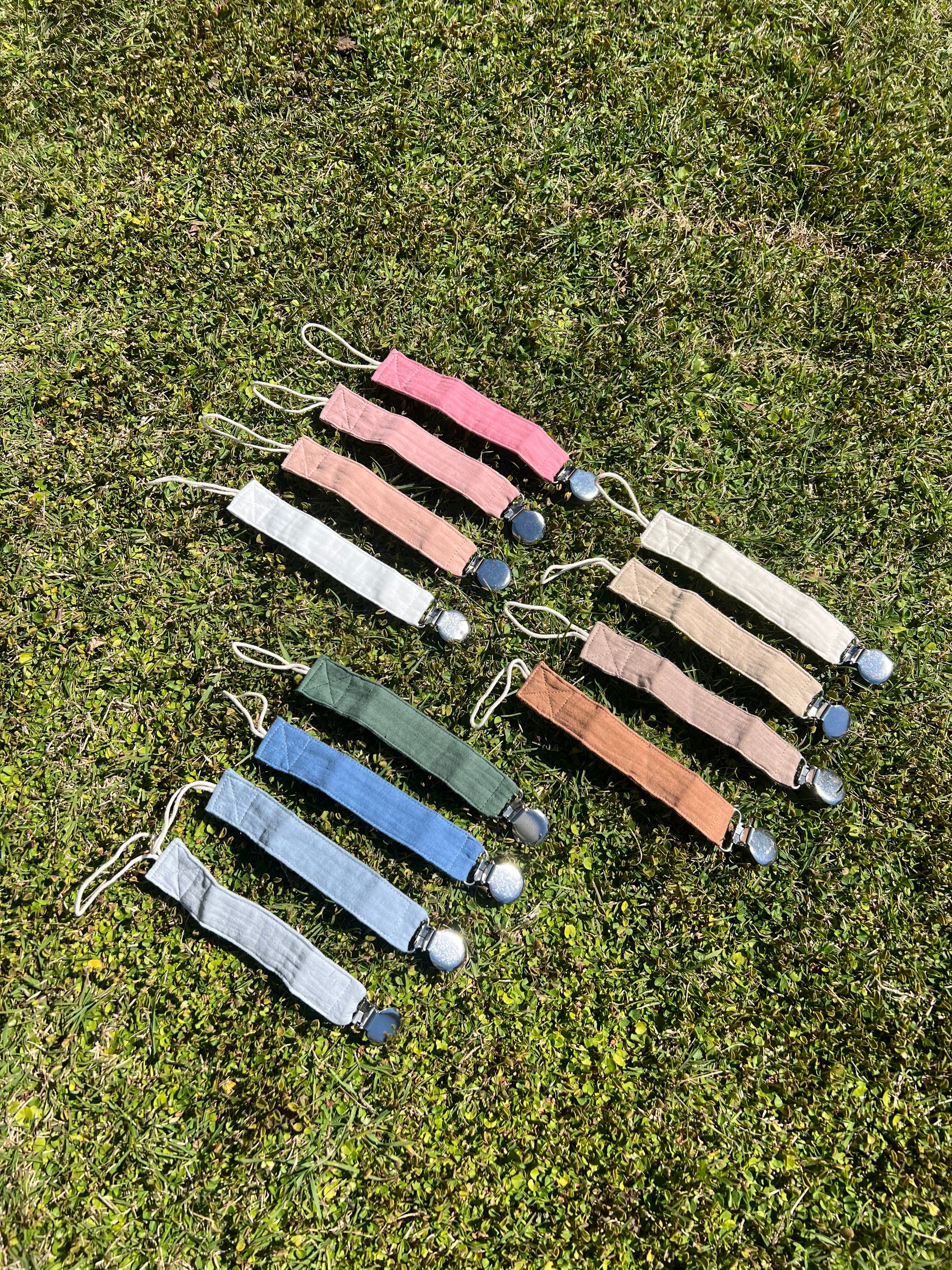 I nostri porta ciucci in stoffa sono l'accessorio perfetto per tenere sempre a portata di mano il ciuccio del tuo piccolo, con stile e sicurezza!